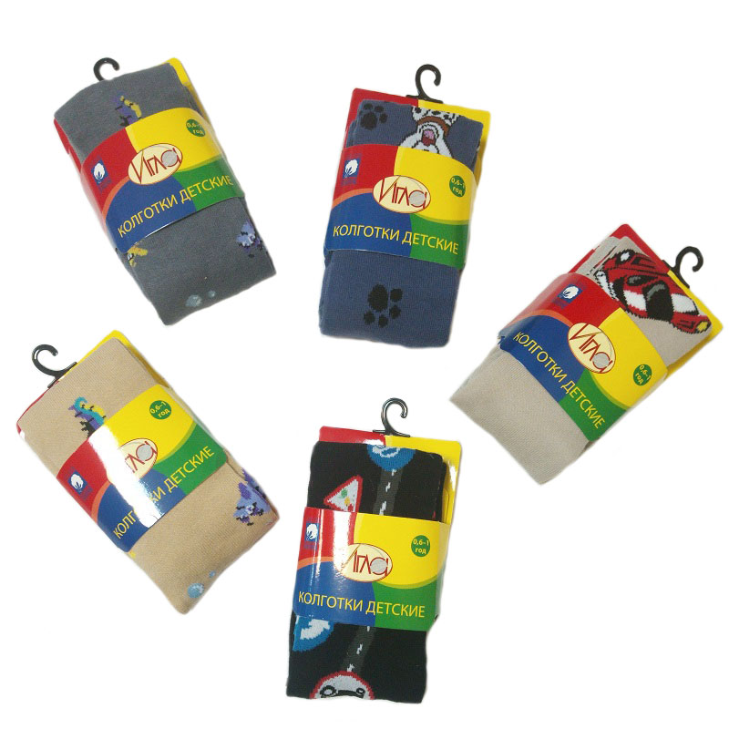 Колготки выполнены из хлопка с добавлением искусственных нитей для прочности и эластичности. Расцветки и рисунки в каждой партии и в каждой упаковке отличаются.