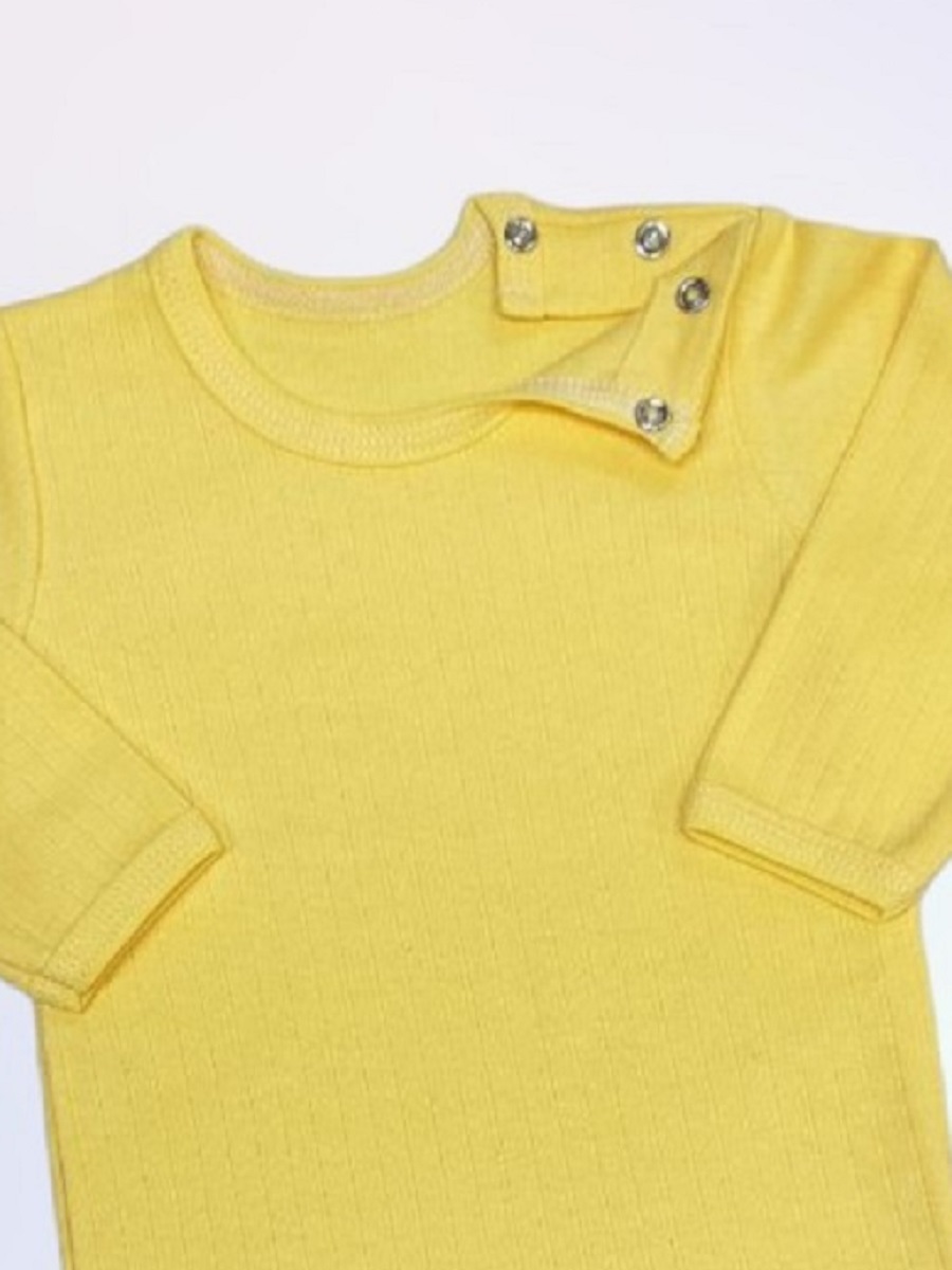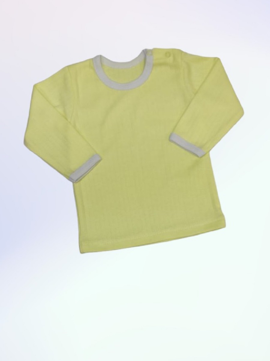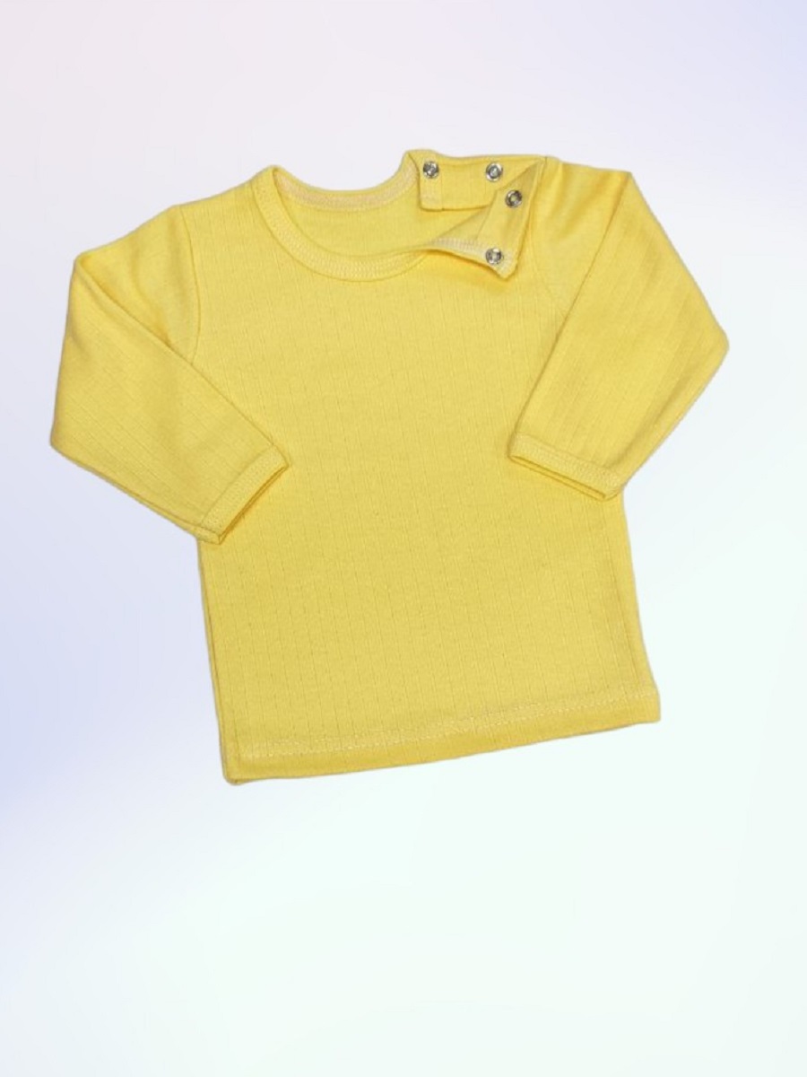 Кофточка однотонная с длинным рукавом, с двумя кнопочками на одном плече.